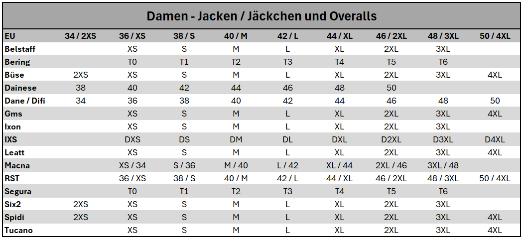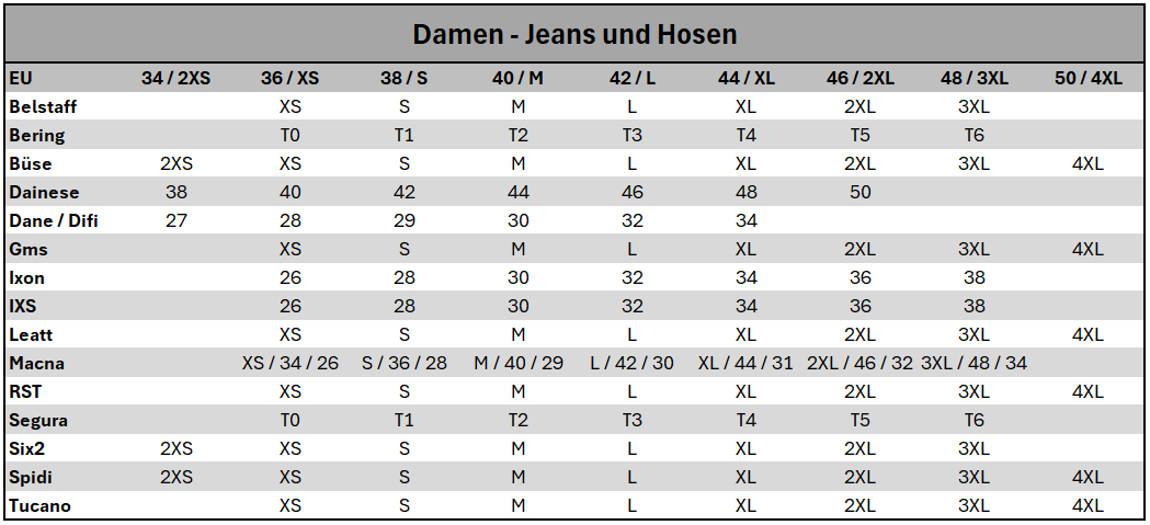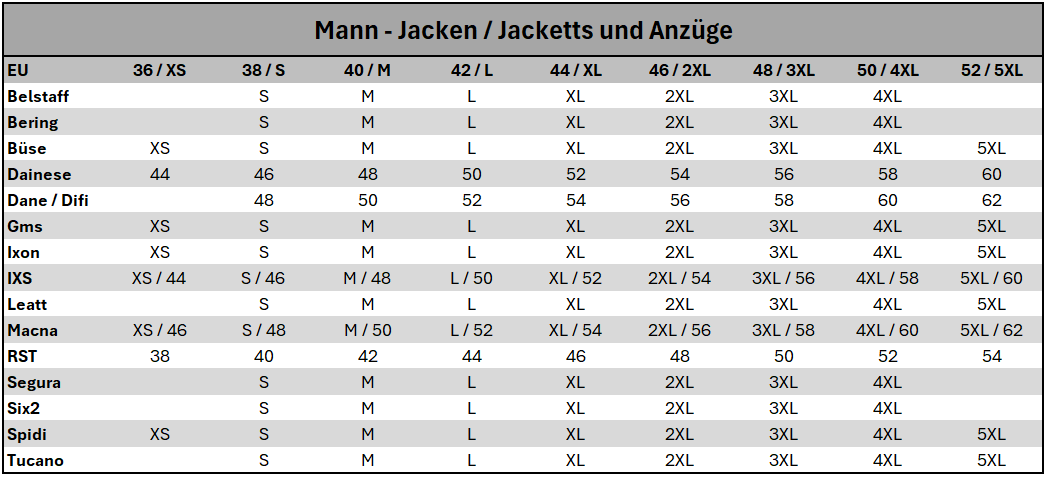 Größe EU | 36 | 38 | 40 | 42 | 44 | 46 | 48 | 50 |