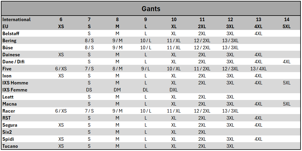 | Tour de main en cm | 19-20 | 20-21 | 21-22 | 22-23 | 23-24 | 24-25 | 25-26 | 26-27 |
